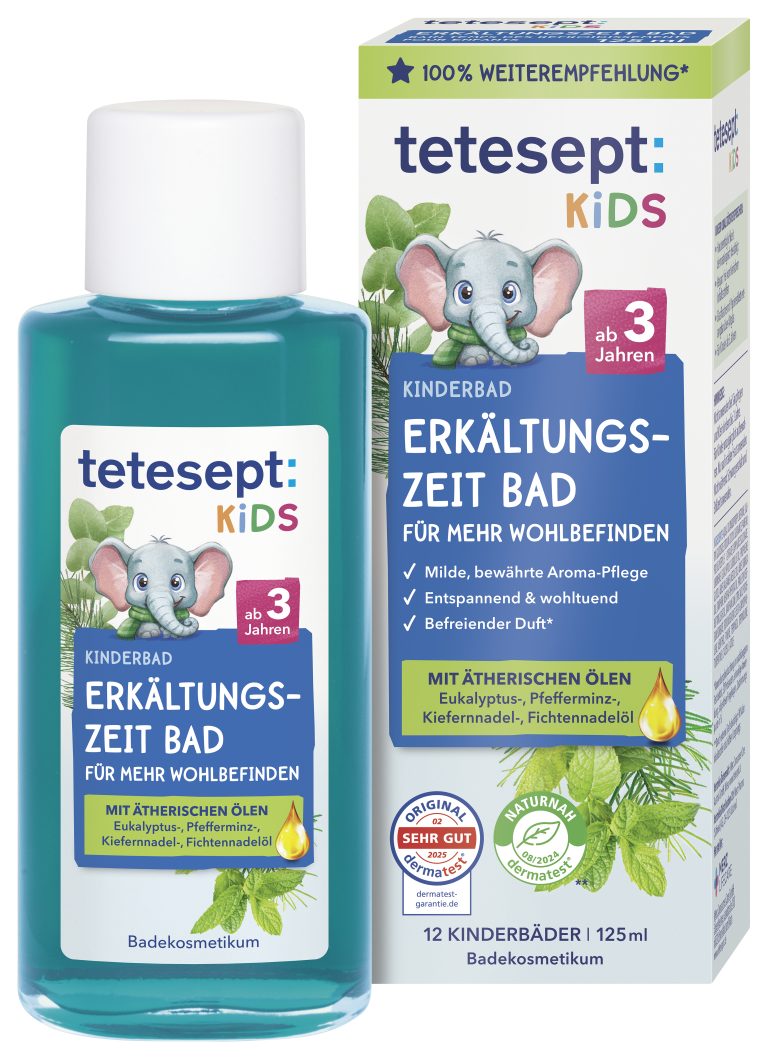 tetesept Kids Kinderbad Erkältungszeit ist ein wohltuender kosmetischer Badezusatz mit natürlichem Duft-Effekt für mehr Wohlbefinden in der nasskalten Jahreszeit.